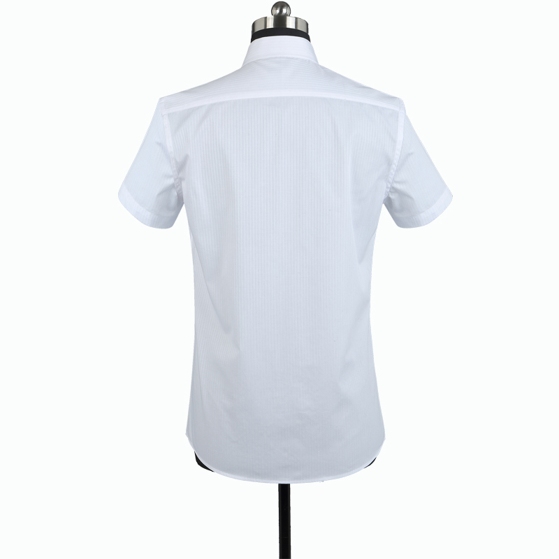 重庆女短袖正规领黑白条纹衬衫