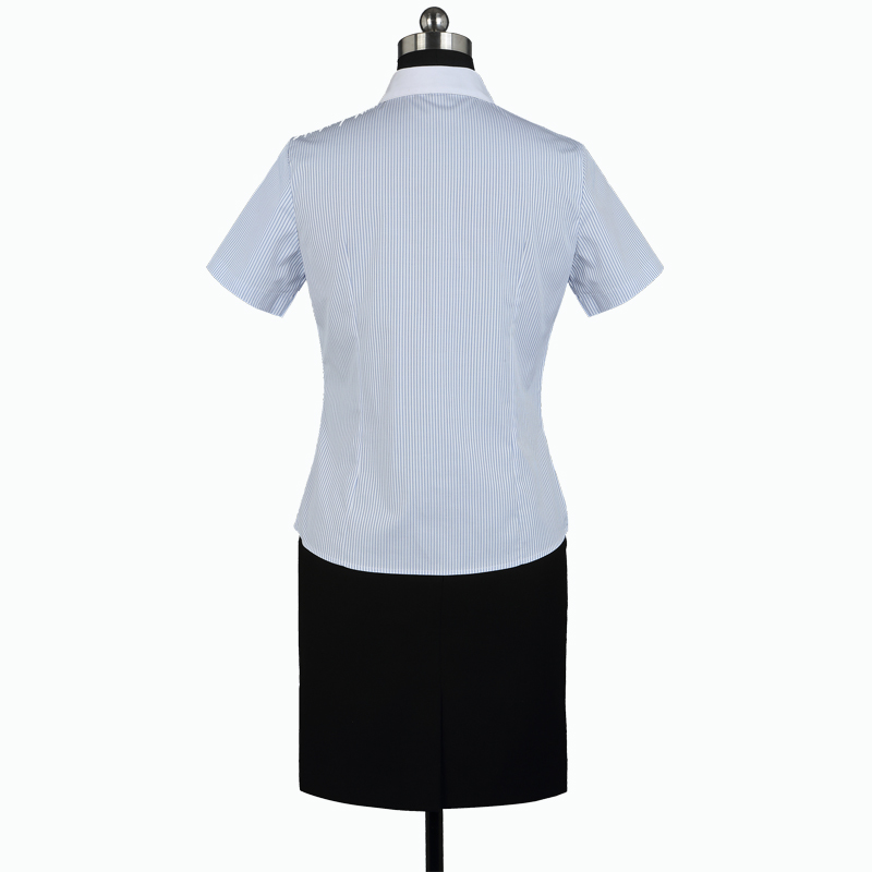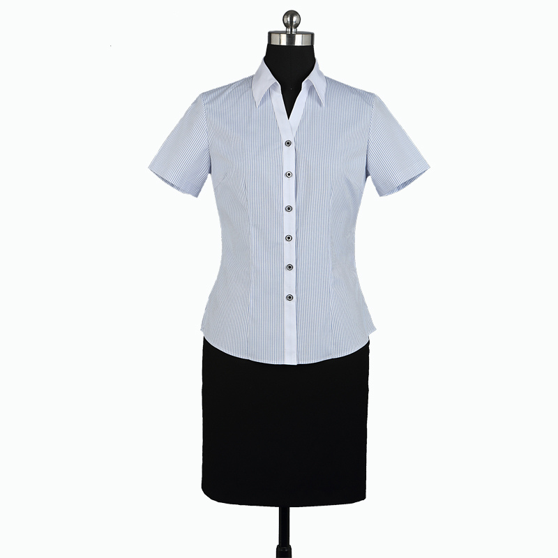 重庆女短袖正规领蓝色仿丝绸衬衫