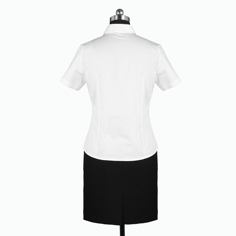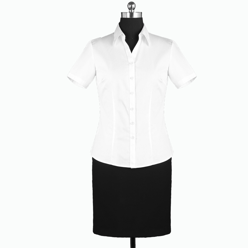 重庆女短袖正规领黑白条纹衬衫