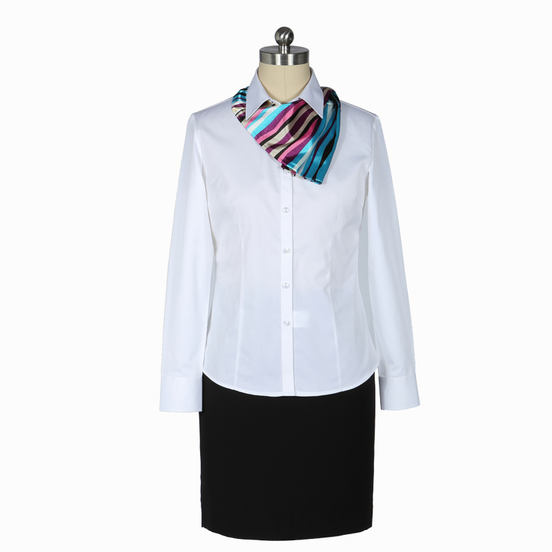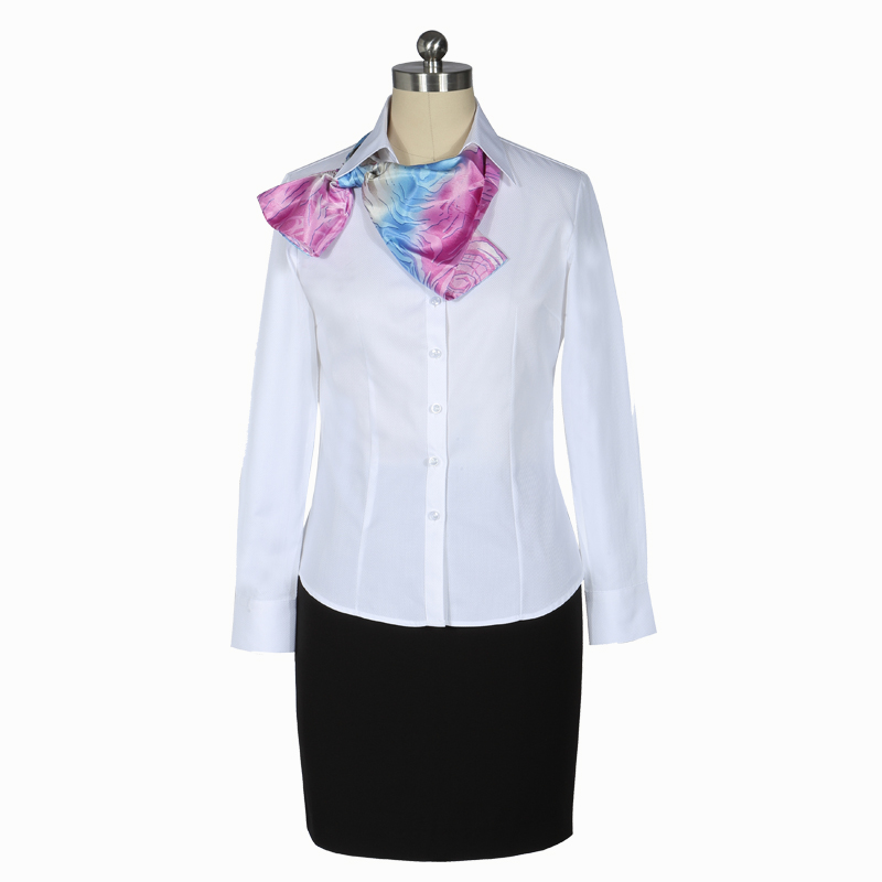 重庆女短袖正规领蓝色仿丝绸衬衫