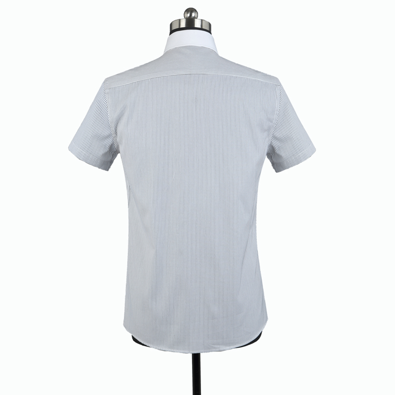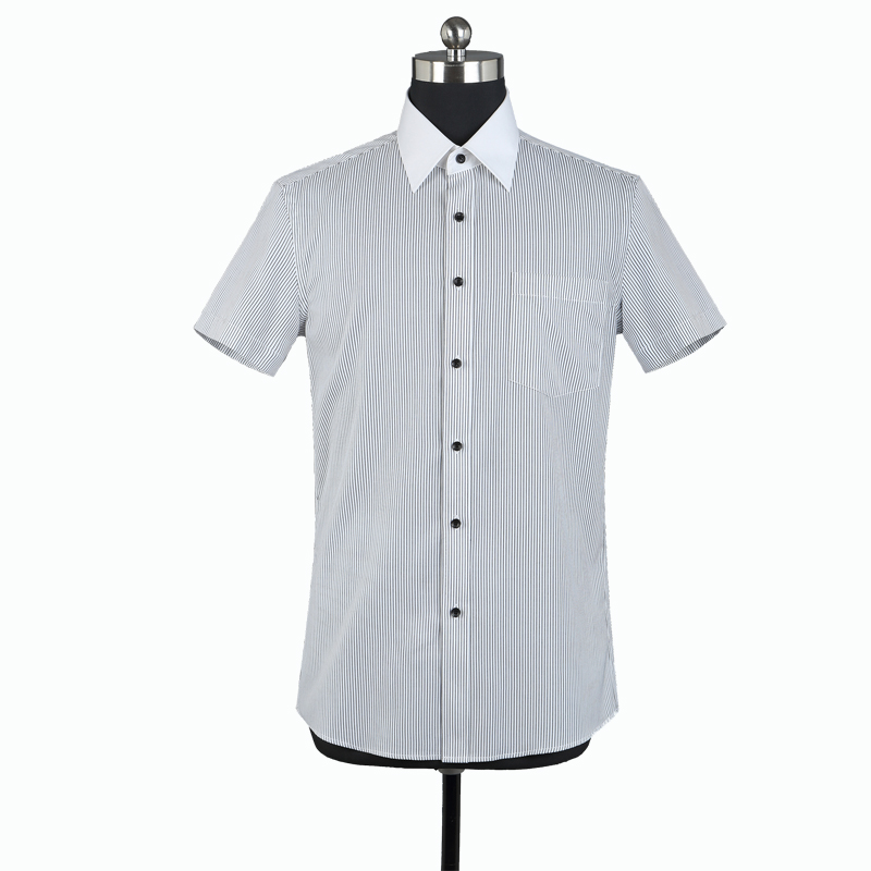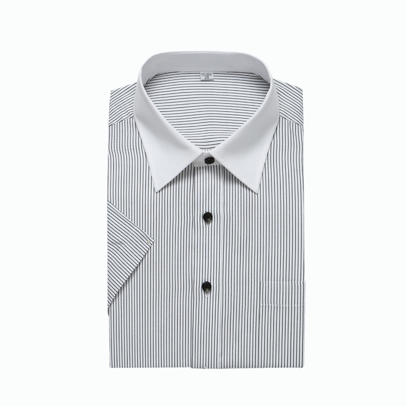 重庆女短袖正规领黑白条纹衬衫