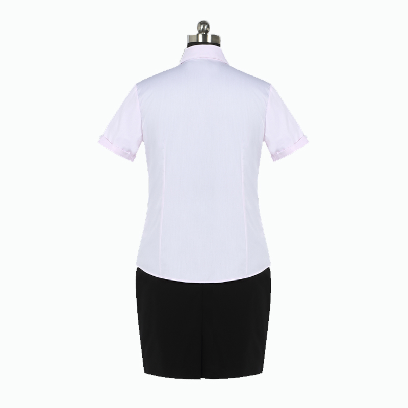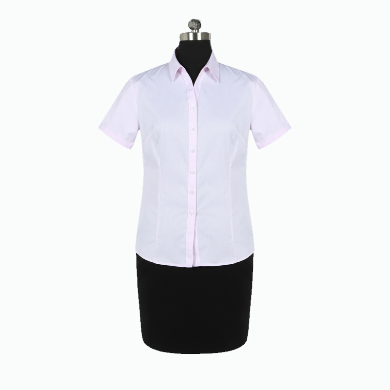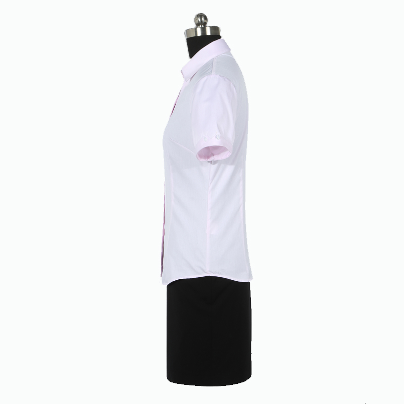 重庆女短袖正规领黑白条纹衬衫
