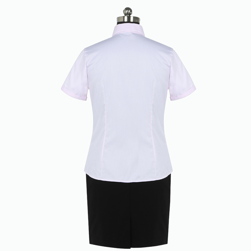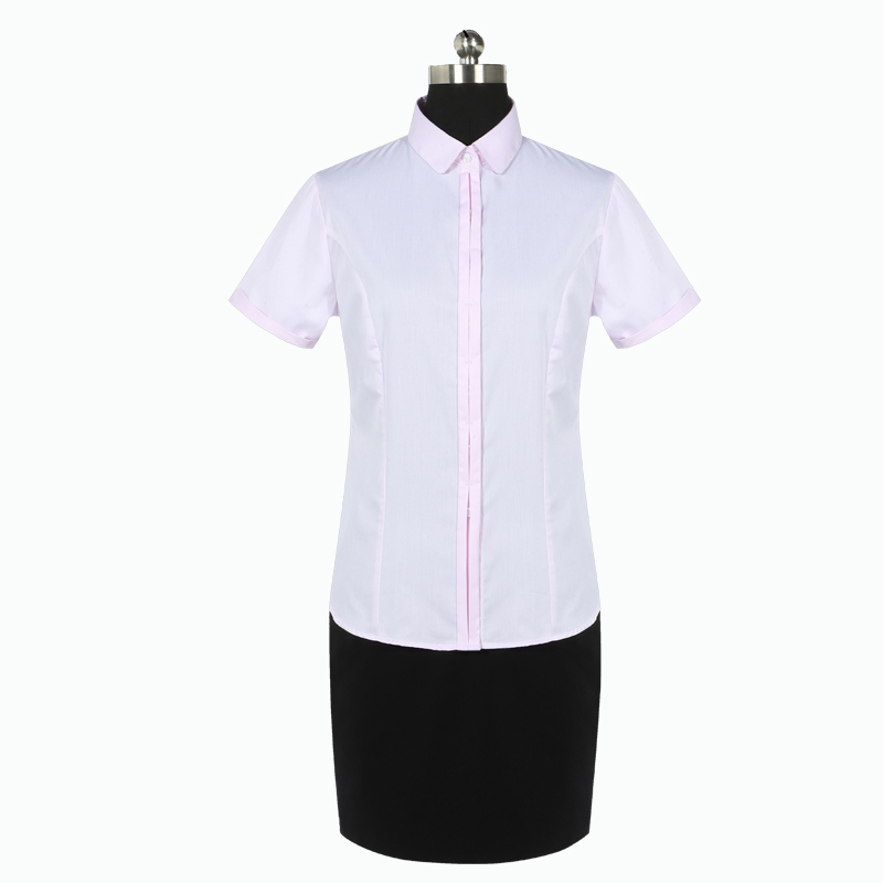 重庆女短袖正规领黑白条纹衬衫