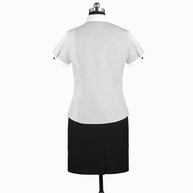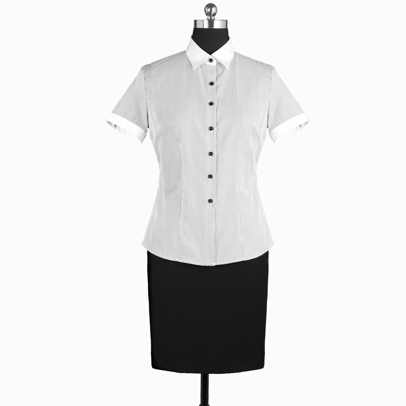 重庆女短袖正规领黑白条纹衬衫