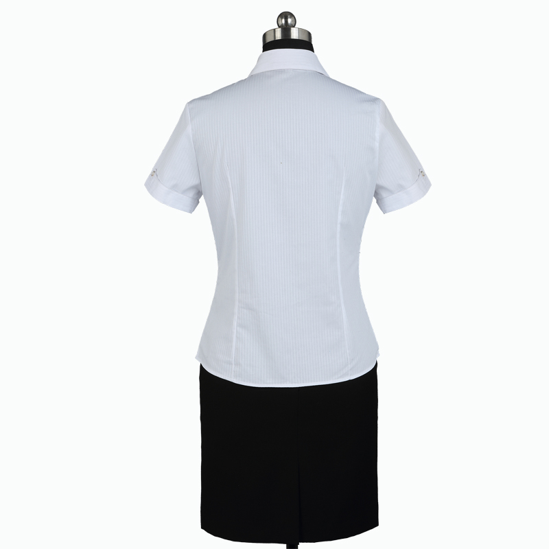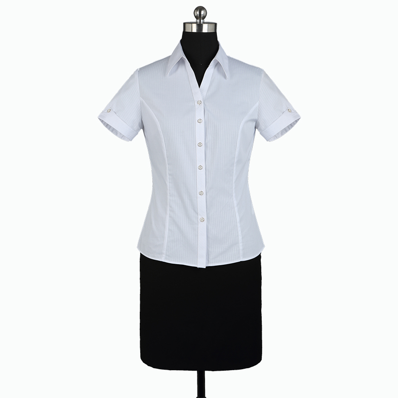 重庆女短袖正规领蓝色仿丝绸衬衫