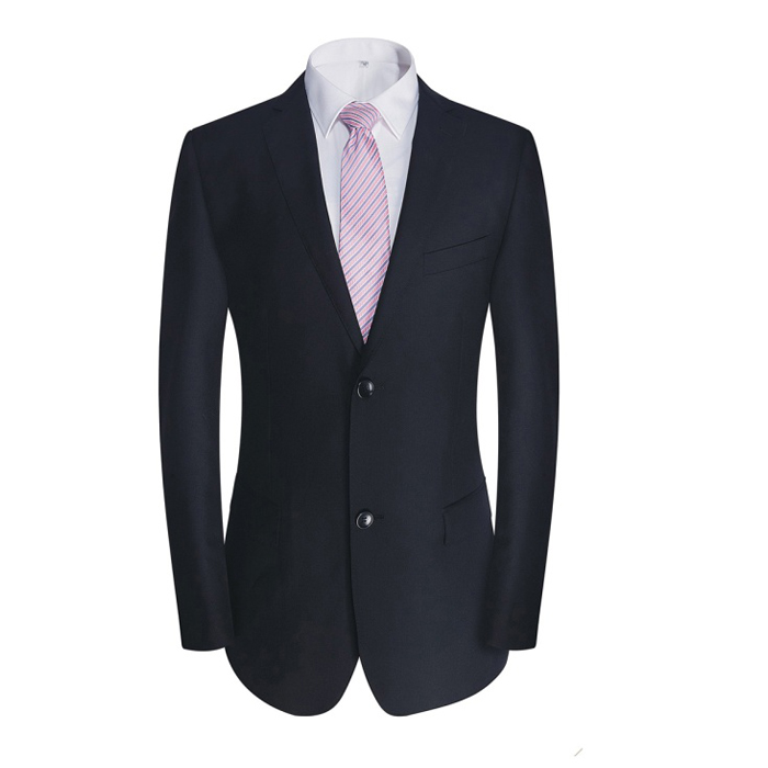 重庆藏青色人字纹毛涤商务男士西装定制