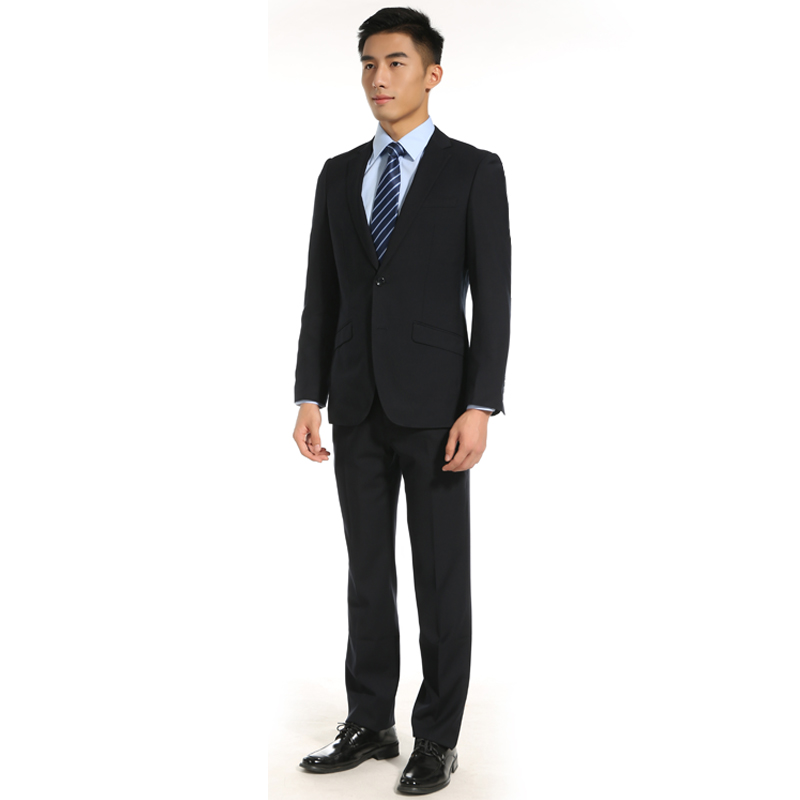 重庆藏青色人字纹毛涤商务男士西装定制